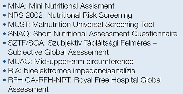 Ezenkívül fontos a tápláltsági állapotot mérő tesztek ismerete is (1. táblázat).