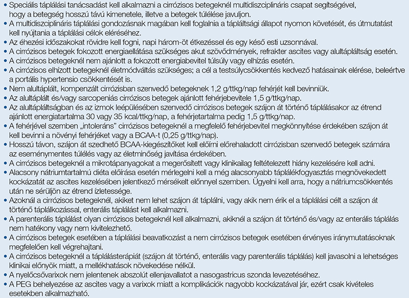 Az ESPEN legfontosabb ajánlásait a májcirrózisos betegek részére a 2. táblázat tartalmazza (5).